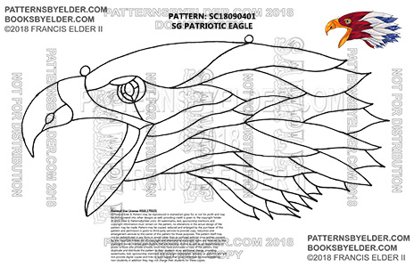© Francis Elder II. Pattern may be reproduced in stained/art glass for or not for profit and may be incorporated into other designs as well, providing credit is given to the copyright holder (Francis Elder II, PatternsByElder.com). All watermarks, text, sponsorship mentions and copyright information must remain on the pattern, no alterations in the actual design of the pattern may be made. Pattern may be copied, reduced and enlarged by the purchaser of this pattern and permission is given to third party services to provide copy, reduction and enlargement services to the owner of this pattern for those purposes. The pattern itself may not be redistributed in any form or resold other than as outlined without prior written consent by the copyright holder. All US copyright and international copyright rights are reserved by the copyright owner. Stained glass studios that are teaching studios as well as art departments in public schools and private schools, once they have purchased a copy of the pattern, may duplicate and distribute the pattern to their students at no additional charge, providing watermarks, text, sponsorship mentions and copyright information remains on patterns and will not provide digital copies and links to such copies that could otherwise be downloaded by non-students, in addition they may not charge their students for these copies.