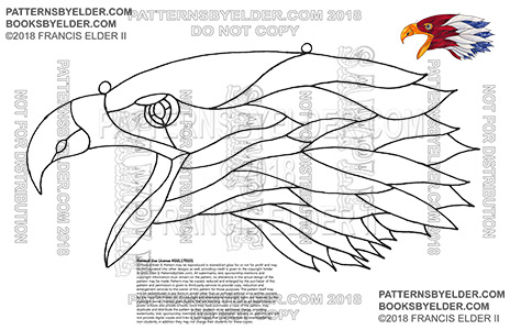 © Francis Elder II. Pattern may be reproduced in stained/art glass for or not for profit and may be incorporated into other designs as well, providing credit is given to the copyright holder (Francis Elder II, PatternsByElder.com). All watermarks, text, sponsorship mentions and copyright information must remain on the pattern, no alterations in the actual design of the pattern may be made. Pattern may be copied, reduced and enlarged by the purchaser of this pattern and permission is given to third party services to provide copy, reduction and enlargement services to the owner of this pattern for those purposes. The pattern itself may not be redistributed in any form or resold other than as outlined without prior written consent by the copyright holder. All US copyright and international copyright rights are reserved by the copyright owner. Stained glass studios that are teaching studios as well as art departments in public schools and private schools, once they have purchased a copy of the pattern, may duplicate and distribute the pattern to their students at no additional charge, providing watermarks, text, sponsorship mentions and copyright information remains on patterns and will not provide digital copies and links to such copies that could otherwise be downloaded by non-students, in addition they may not charge their students for these copies.